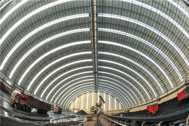 堆场料场封闭式主体结构为新型的钢临江网架结构,维修结构为临江钢结构临江不锈钢板和纤维增强塑料灯具,其外形以临江网架式和平板为主,连接柱临江施工自由,设置喷雾自动喷水系统,从而可以实现棚内所有物料的覆盖,减少物料在运输过程中的损耗,起到防尘的作用,减少工厂关闭后的二氧化硫排放量,50mg/m3颗粒排放量小于10mg/m3,非常适合低能耗。低闭库自动感应反应对库存轮胎进行清洁,确保轮胎不受道路污染;封闭的储存区可从源头控制粉尘污染,控制无序排放。